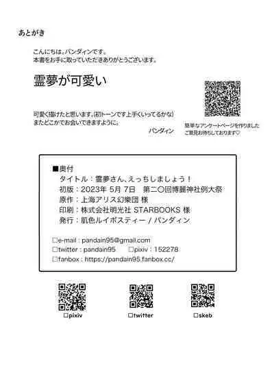 (Meikasai 17) [Hadairo Rooibos Tea (Pandain)] Reimu-san, mata! Ecchi shimashou! (Touhou Project) [Digital]