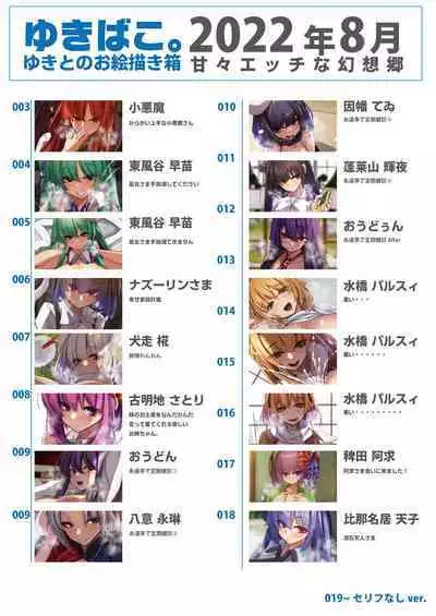 [DREAM RIDER (Yukito)] Yukibako - Yukito no Oekakibako 2022-08 Amaama Ecchi na Gensoukyou (Touhou Project) [Digital] [DREAM RIDER (ゆきと)] ゆきばこ ゆきとのお絵描き箱 2022年8月号 あまあまえっちな幻想郷 (東方Project) [DL版]